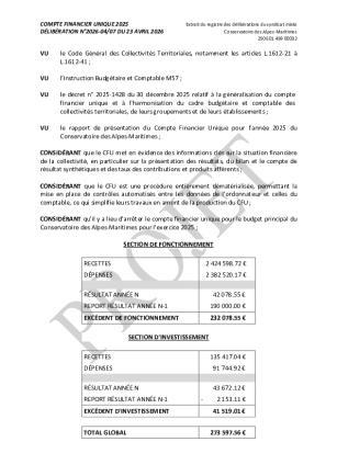 Comité : Reprise anticipée des résultats 2025 au budget primitif de l'exercice 2026 DÉLIBÉRATION N°2026-01/02 DU 29 JANVIER 2026