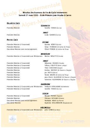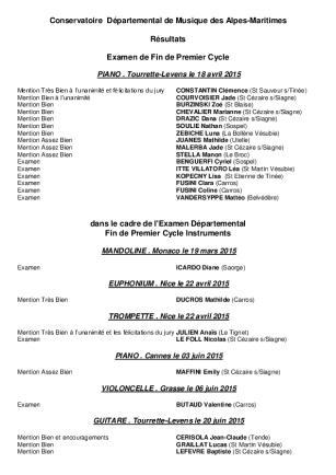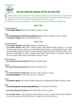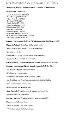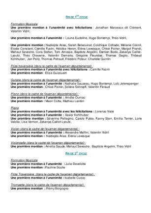 Lauréats, 2024/2025 : Les lauréats des examens de fin de cycle 2024/2025 Epreuve instrumentale