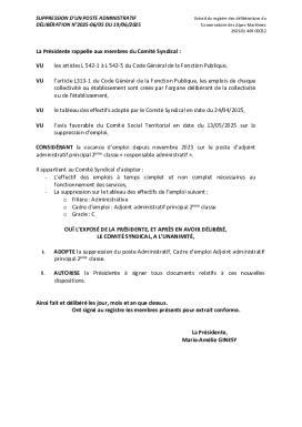 DÉLIBÉRATION N°2025-05/07 DU 19/06/2025 - SUPPRESSION D’UN POSTE ADMINISTRATIF